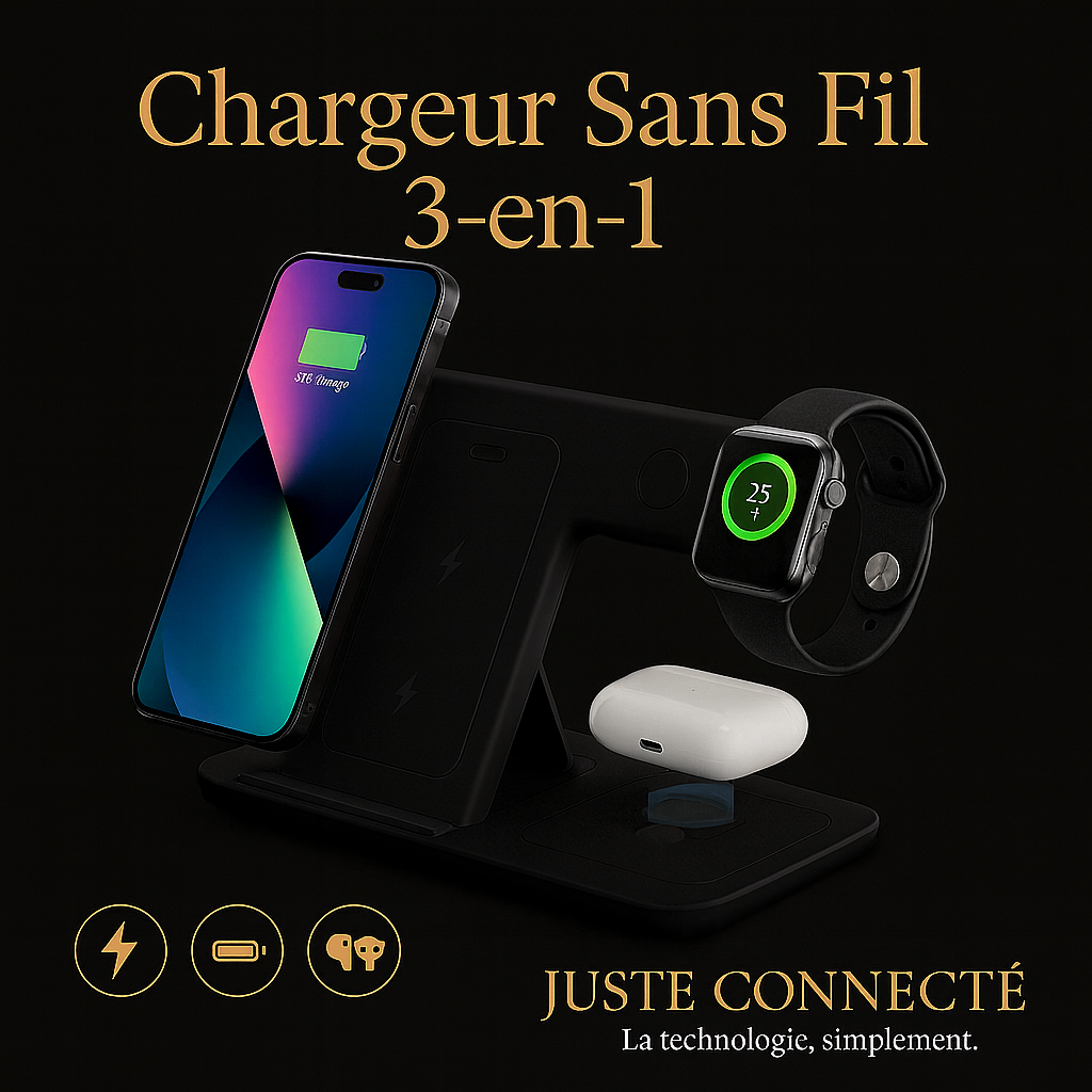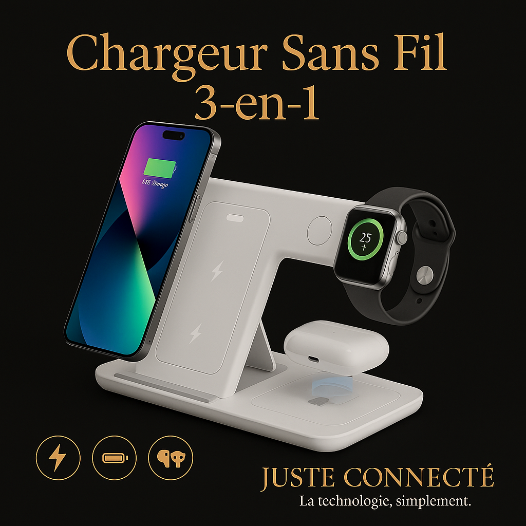 - 3 en 1 : recharge simultanée de ton iPhone, Apple Watch et AirPods