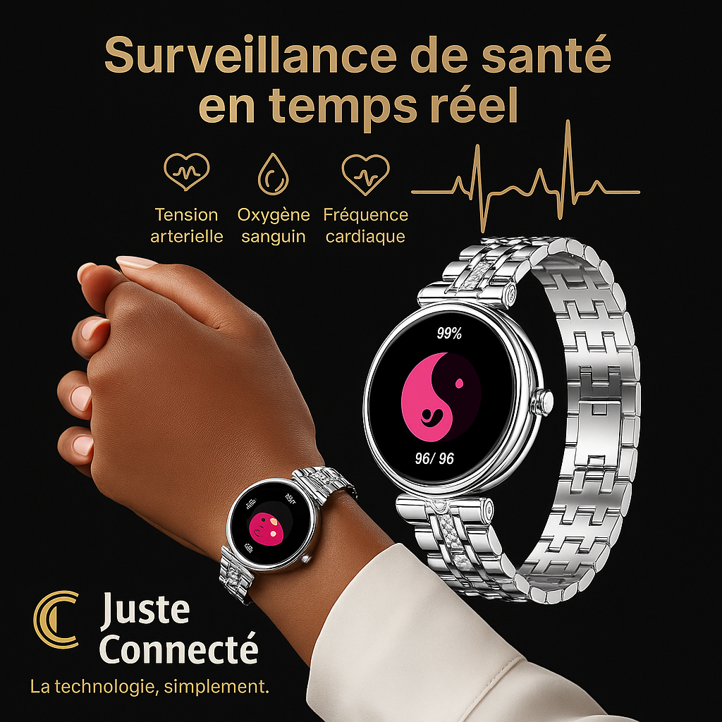 Découvrez une montre connectée haut de gamme conçue pour allier élégance, performance et santé. Avec son écran AMOLED ultra-net, son suivi santé complet et ses fonctions intelligentes, elle devient votre alliée idéale au quotidien comme au sport.