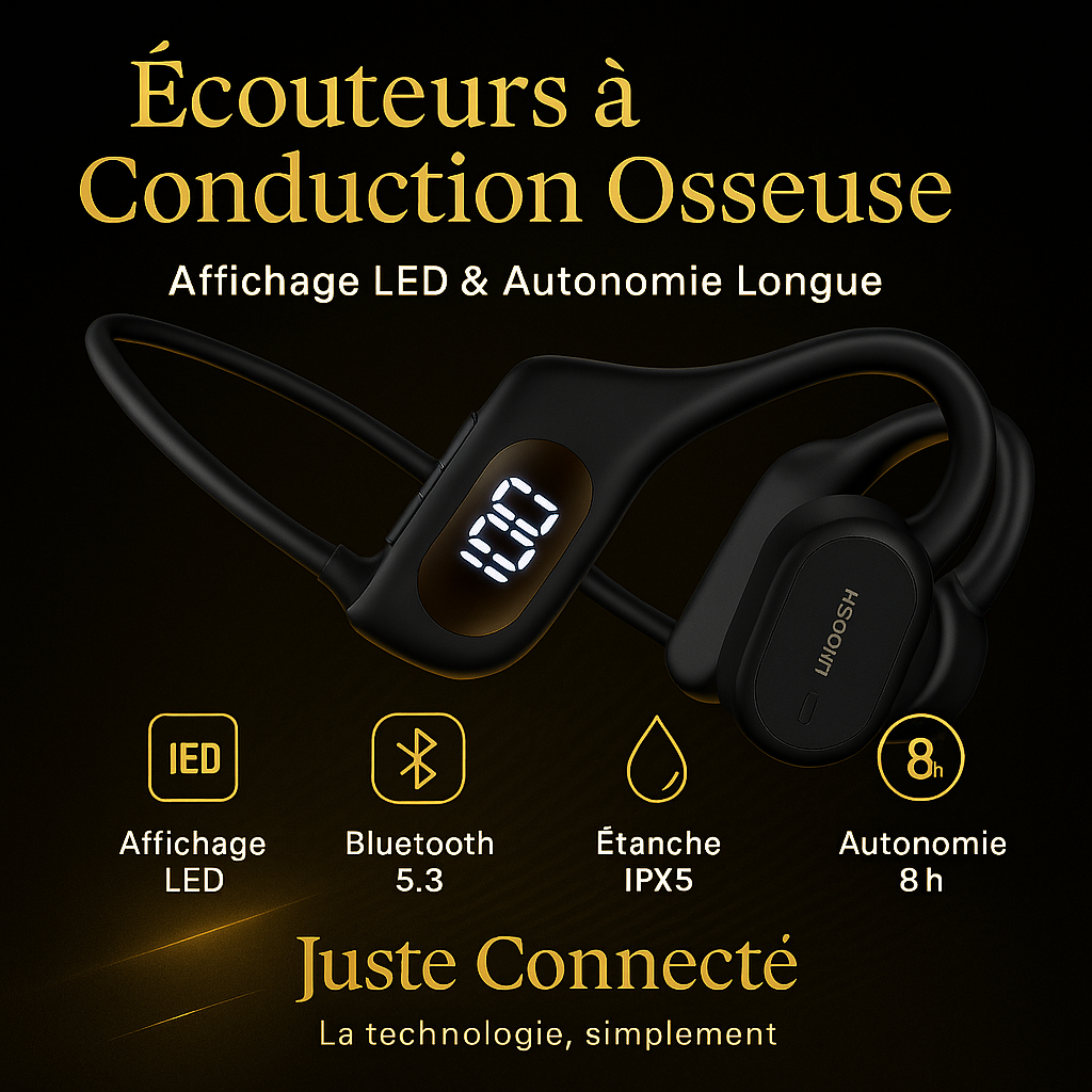 🎧 AKZ-G6 – Casque à Conduction Osseuse Bluetooth 5.3 avec Affichage LED & Support Carte TF