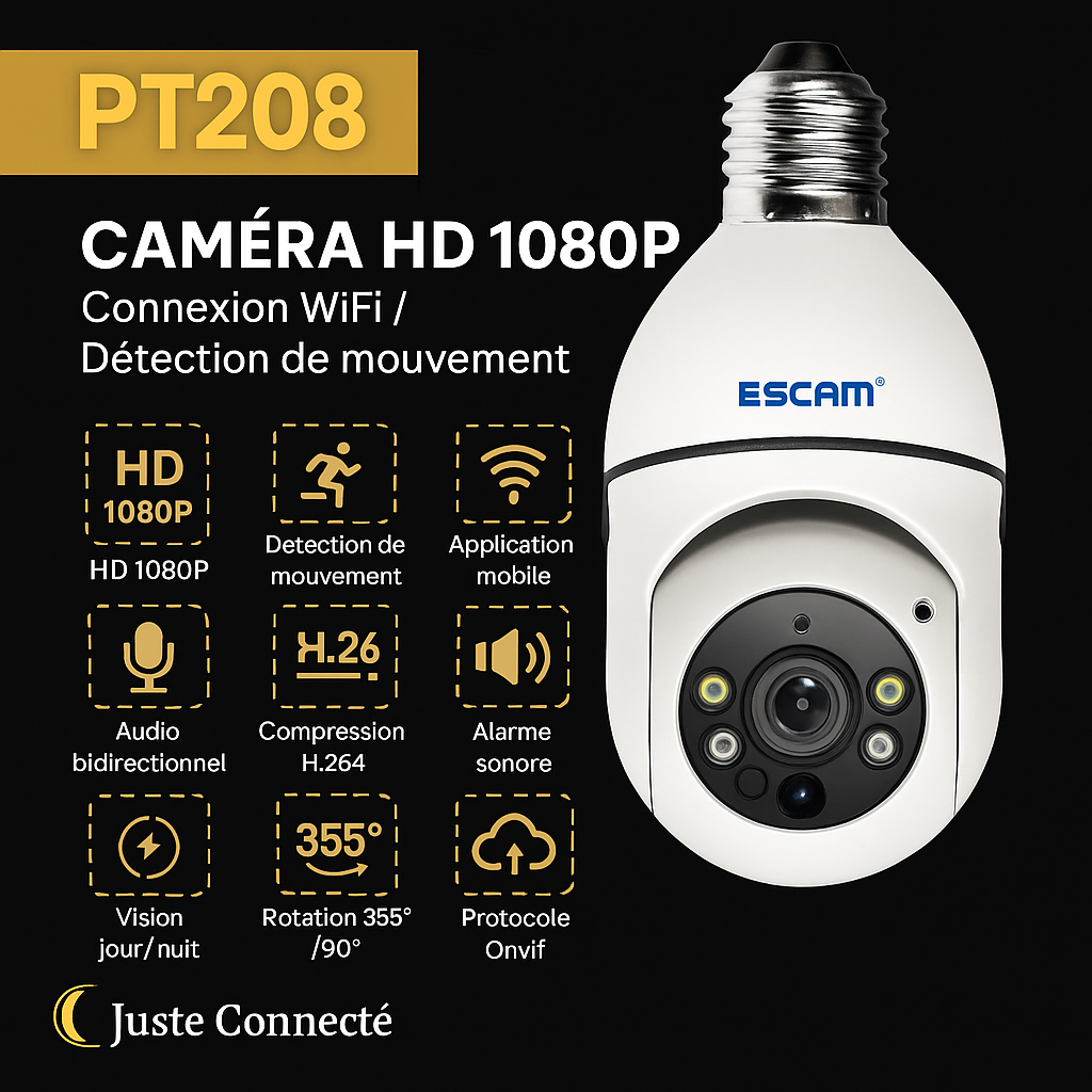 Reste connecté à ton foyer où que tu sois avec la Caméra de Surveillance WiFi ESCAM PT208, une solution de sécurité intelligente pensée pour protéger ta famille et tes biens avec efficacité.