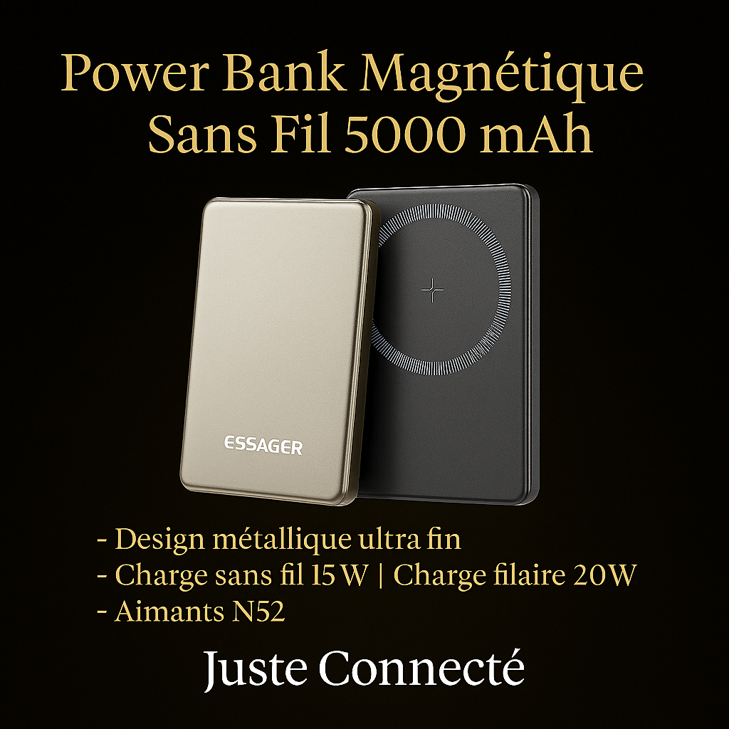 🔋 Power Bank Magnétique 5000mAh – Charge Rapide 15W/20W, Ultra Slim & Sécurisée