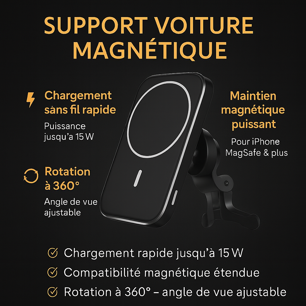 Support Voiture Magnétique avec Chargeur Sans Fil Qi – Fixation Grille d’Aération