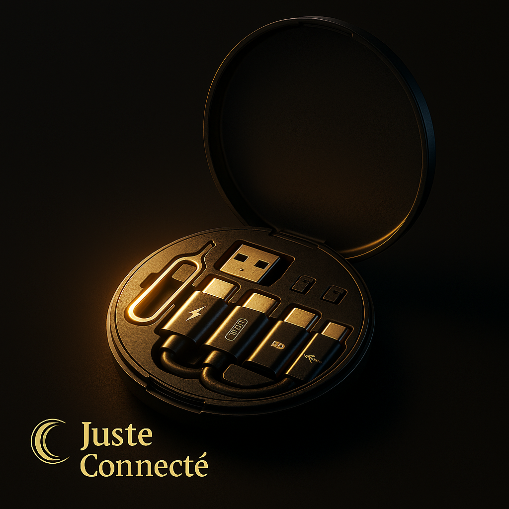 Ne soyez plus jamais pris au dépourvu lors de vos déplacements. Ce kit multi-adaptateurs 6-en-1 regroupe tout ce dont vous avez besoin pour recharger vos appareils, transférer vos données et gérer vos cartes SIM, le tout dans un étui compact qui tient dans la poche.