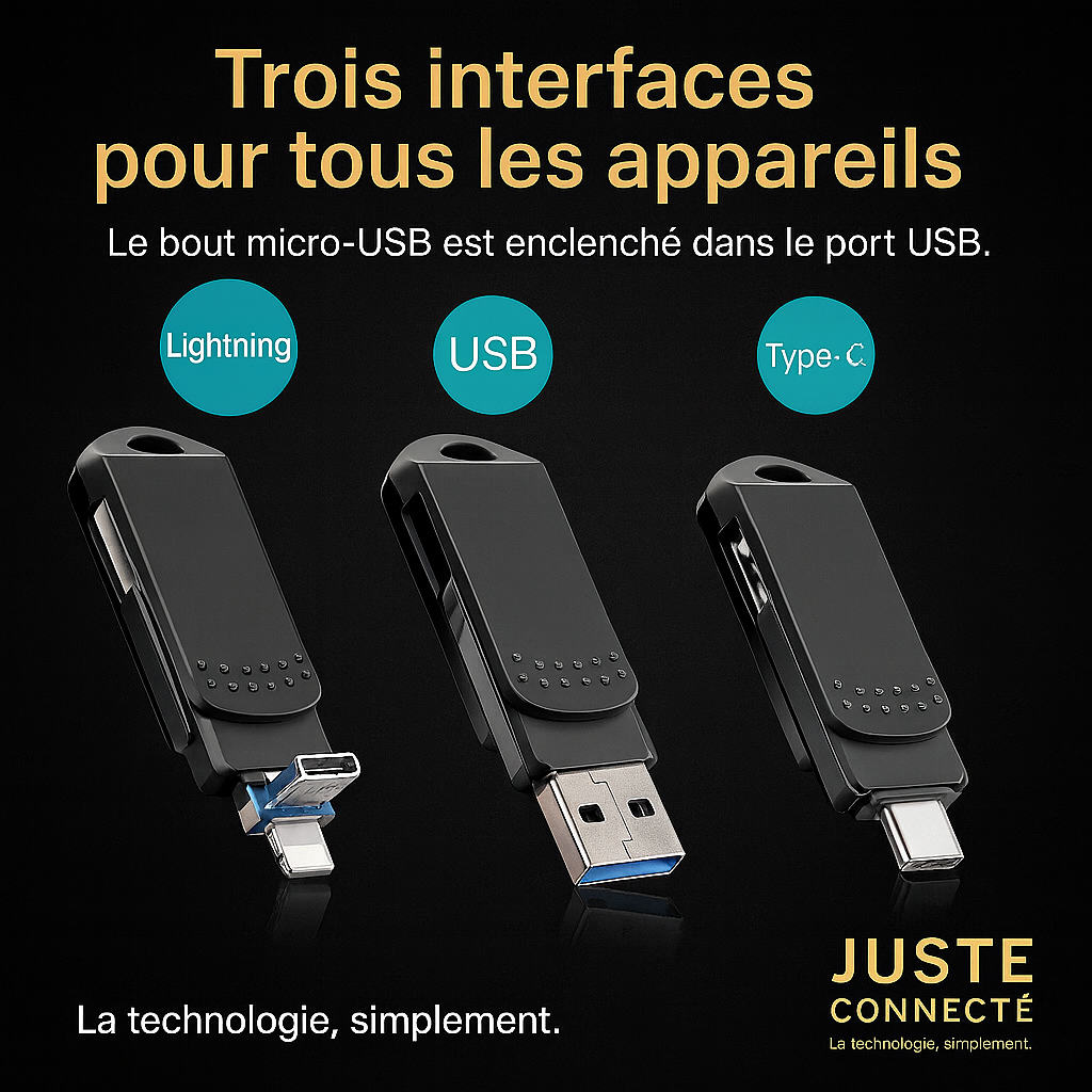 Simplifie ton quotidien avec cette clé USB 3-en-1 haute vitesse !