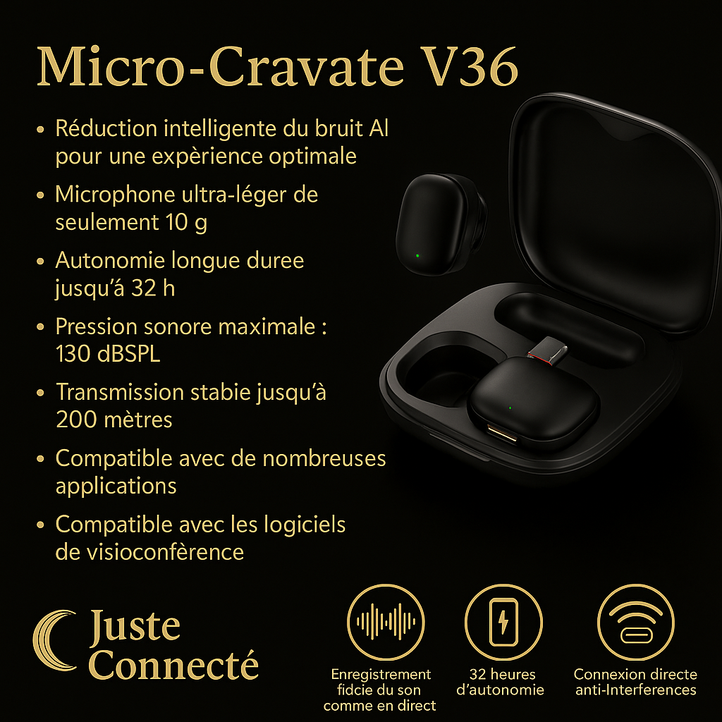 🎤 Micro-Cravate Sans Fil – Qualité Audio Professionnelle pour Créateurs de Contenu
