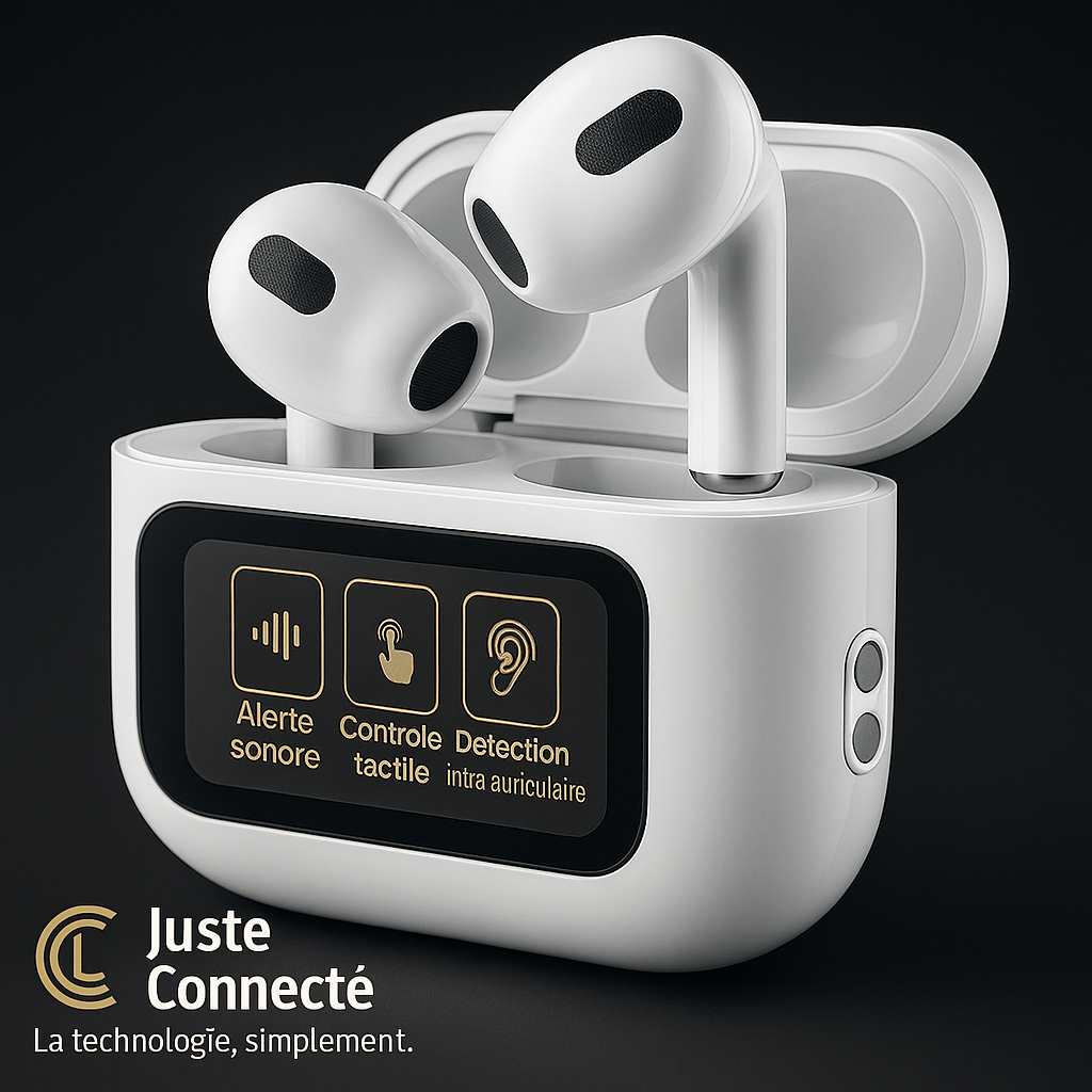Écouteurs Bluetooth sans fil avec écran LED, détection intra-auriculaire, contrôle tactile et son HD